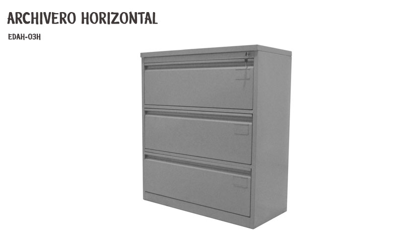 Archivero horizontal con 3 gavetas, corredera de extensión y chapa de seguridad