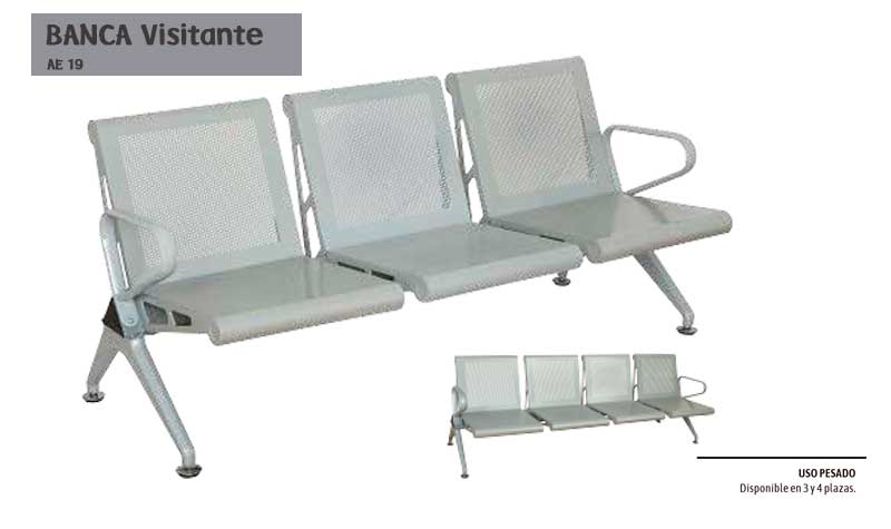 Banca metalica reforzada de 3P o 4P, capacidad de 150 kgs. por asiento, cuerpo fabricados a base de lamina de acero rolado en frio cal. 18, soporte horizontal fabricado en perfil triangular de acero mejorando su refuerzo, rolado en frio cal. 14, pata y descansa brazos fabricados en lamina de acero rolado en frio cal. 18, todos los elementos son maquinados para un ensamble perfecto, dobleces en radios y angulos bien alineados sin deformaciones, cavidades, huecos ni formas en bajo relieve para su correcto funcionamiento y durabilidad, acero rolado en frio a base de soldadura MIG, asiento y respaldo ensamblados en patas y soporte por medio de anclajes metalicos, soporte horizontal ensamblado con sujetador de estructura en lamina de acero en frio cal. 12 totalmente armada.