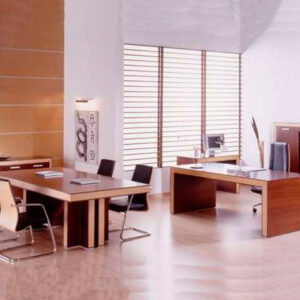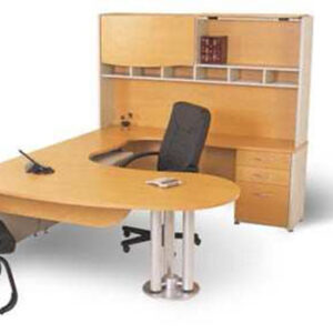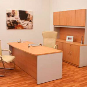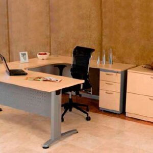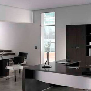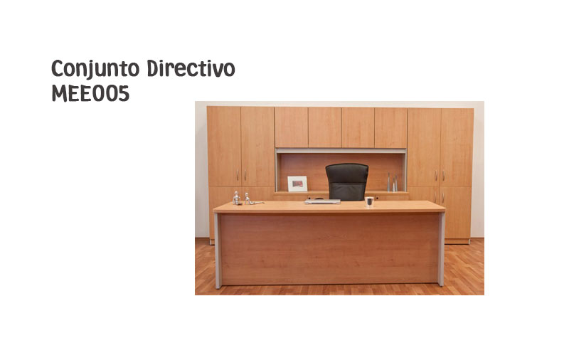 CONJUNTO DIRECTIVO CONSTA DE ESCRITORIO DE 1.60, CON CREDENZA DE 4 CAJONES Y UN ENTREPAÑO CENTRAL Y LIBRERO