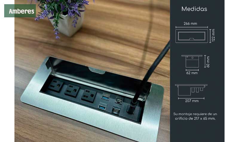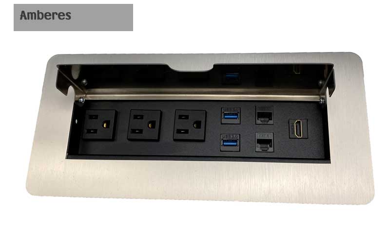 Su sistema de apertura es manual mediante una puerta que nos ayuda a ocultar los contactos cuando no son utilizados. Fabricado en Acero con recubrimiento de pintura electrostática las cual nos ayuda a proteger la calidad y tiempo de vida del color y con marco y puerta de acero inoxidable terminado cepillado.
