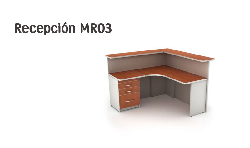 RECEPCION EN “L” DE 1.50 X 1.50 CON CAJONERA AL PISO DE 3 CAJONES Y CHAPA DE SEGURIDAD.