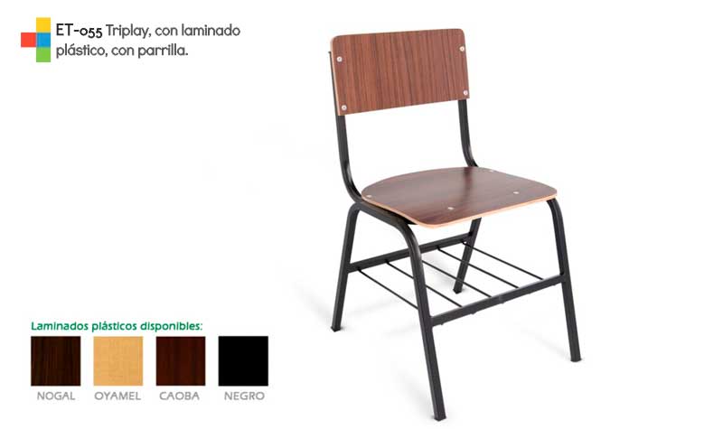 Silla de TRIPLAY ET-055 con laminado plastico y parrilla