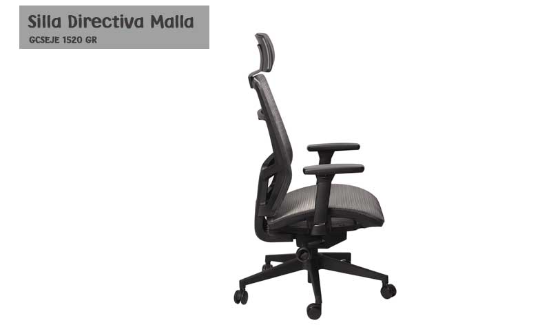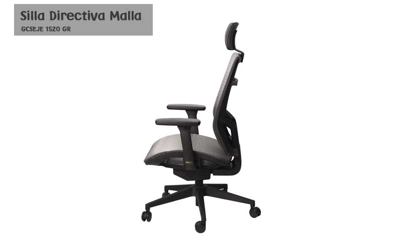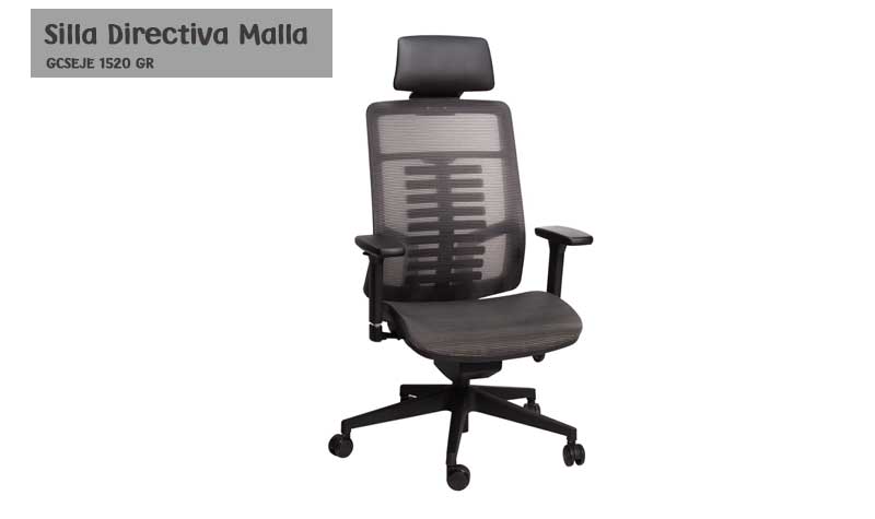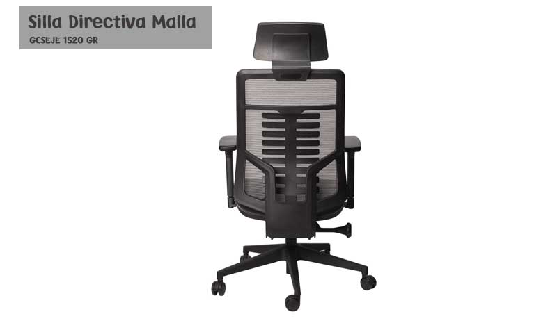 MATERIAL: Respaldo y asiento en resistente malla de nylon color gris brillante en fondo negro, estructura de nylon color negro.