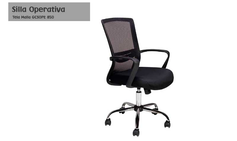 MATERIAL – Respaldo en malla y asiento de espuma inyectada de alta densidad de 45 Kg/M3, tapizado en color negro.