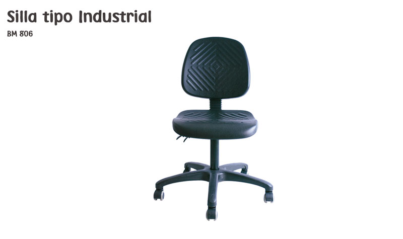 DESCRIPCIÓN Silla industrial Respaldo fijo con barra reforzada Base de nylon con descansa pies y rodajas