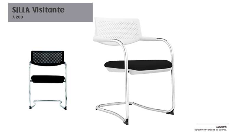 Respaldo en polipropileno perforado, en colores blanco o negro, asiento de concha en polipropileno, en colores blanco o negro, tapizado en color negro (de linea) o en color a eleccion de nuestro catalogo de tapices, hule espuma en asiento de 5 cms. de espesor y densidad 40 kgs/m³, estructura en tubo redondo de 1” cal. 16, terminado en cromo, regaton antiderrapante de nylon color negro, para evitar rayaduras en piso.