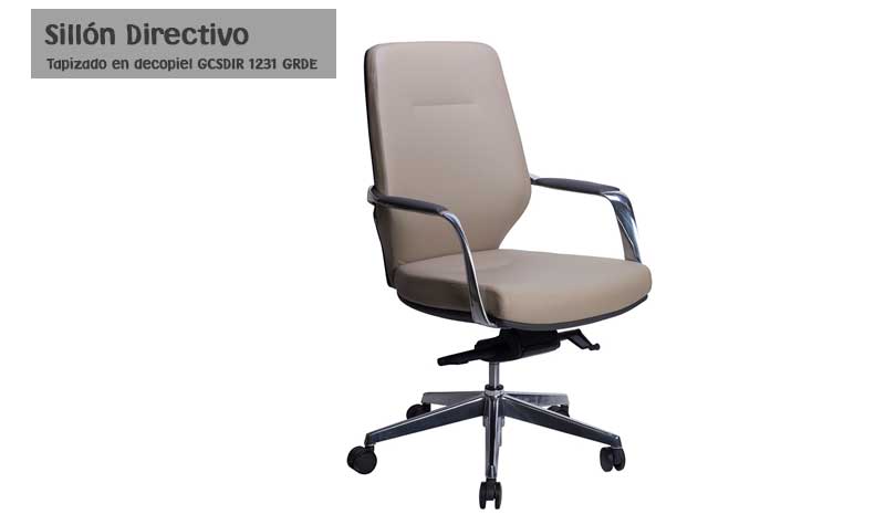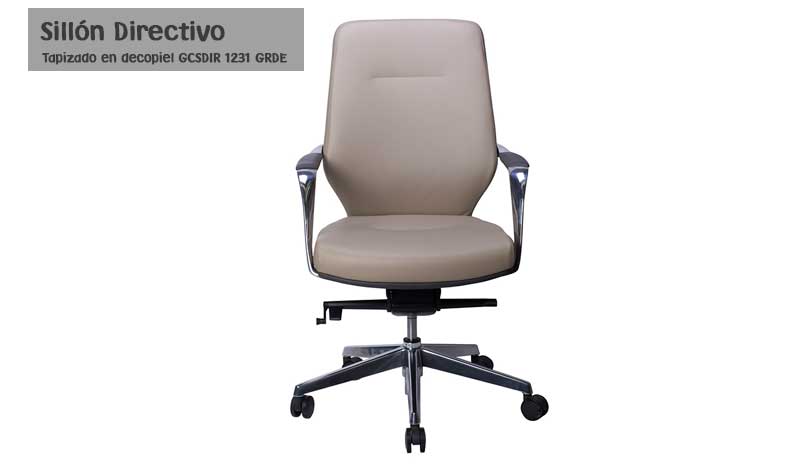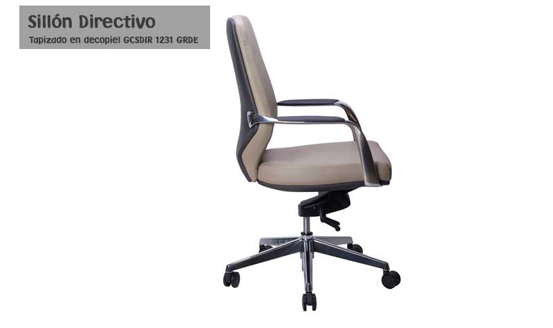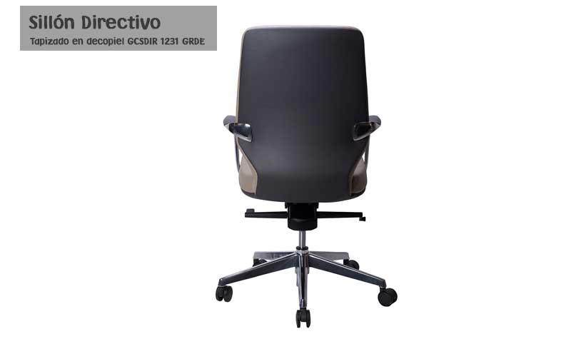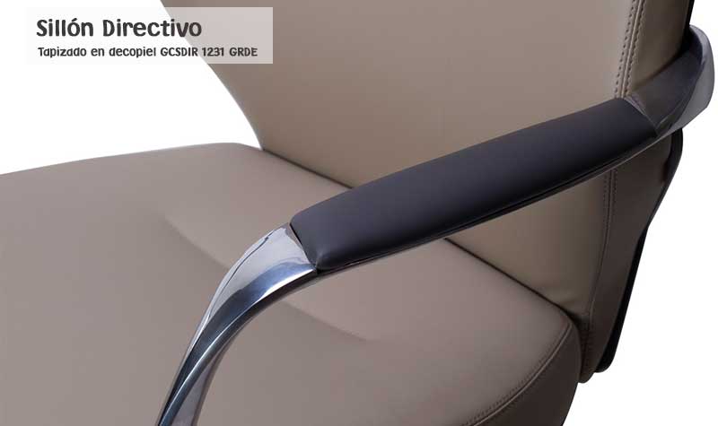 MATERIAL – Espuma inyectada de alta densidad. El frente del respaldo y asiento en decopiel color taupe. Parte trasera en decopiel color gris oscuro.